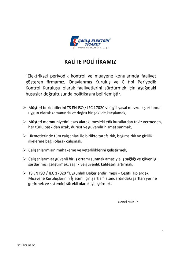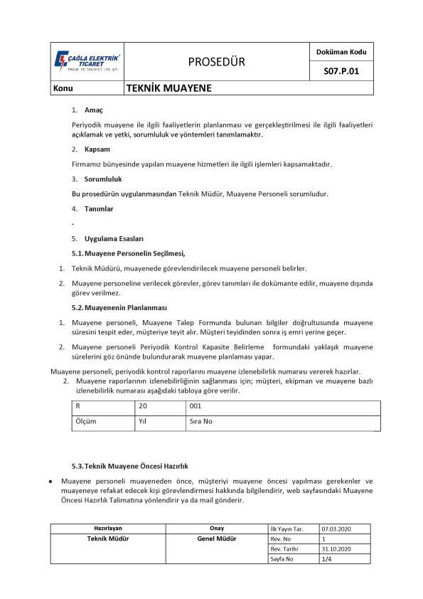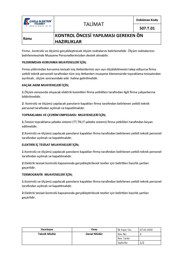 S07.T.01.00 Periyodik Kontrol Öncesi Hazırlıklar Talimatı